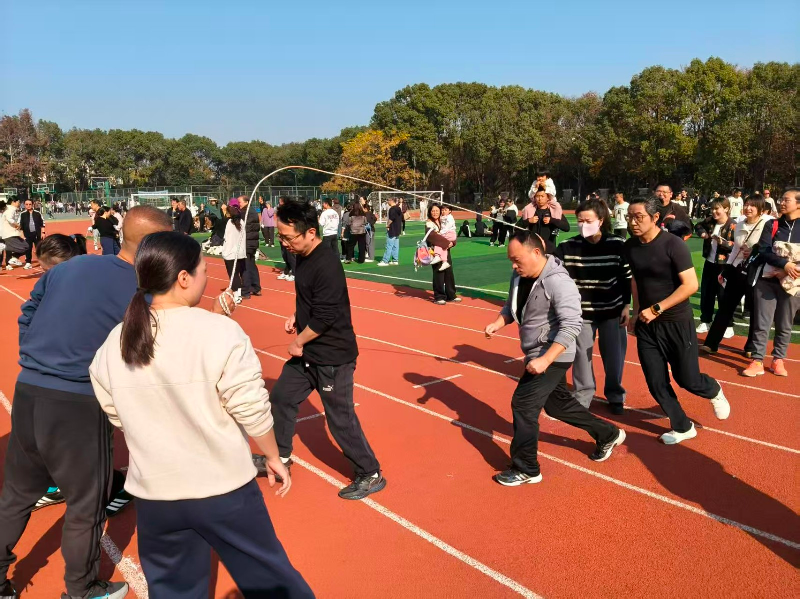 最受瞩目的当属“8字”长绳和多人跳竹竿两大团体项目。“8字”长绳比赛中,甩绳队员默契配合,绳子落地发出清脆的“啪啪”声,参赛教师们找准节奏、依次穿梭,如灵动的鱼儿在绳间游弋,连贯的动作赢得阵阵喝彩;跳竹竿项目里,随着“开合开合开开合合”的节拍,老师们脚步轻快、错落有致,在交替起落的竹竿间从容跳跃,既展现了敏捷的反应力,更彰显了团队的协同作战能力。赛场边,助威声、欢呼声、欢笑声交织回荡,成为冬日里最温暖的旋律。