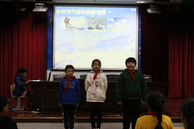 活动伊始,由郭青老师带领的五(6)中队少先队员们给大家带来了一堂精彩的少先队活动课——《片片小雪迎冬日》。课堂从“走进小雪,感受节气之美”、“了解小雪,感受前人智慧”、“动感小雪,传承传统文化”等三大板块为主线开展活动。