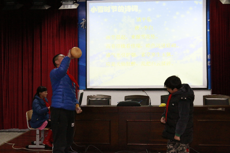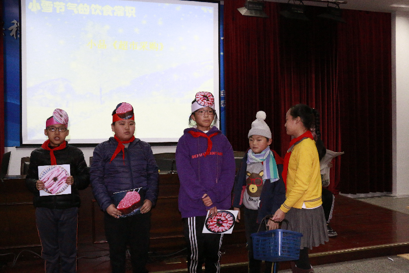 在雪精灵小队的探究汇报中,队员们了解小雪节气对农事的作用,并分享交流了小雪农谚;在冬之韵小队的探究汇报中,队员们了解到小雪节气的民风民俗,并品尝糍粑,其乐融融;在吃货小队的小品中,队员们了解了小雪节气的饮食;在学霸小队的诗词分享中,队员们分享了小雪节气的诗词,制作书签寄温暖。随后,大家一起学习《五禽戏》,传承传统文化。在活动体验中,队员们感受着节气的自然之美、感受着先人的智慧,激发了少年儿童对传承中华传统文化的自觉性、积极性。