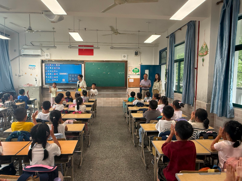 在验收过程中,检查组重点围绕一年级各班学生的课前准备、课前儿歌、课堂口令及师生简单问答四个核心维度展开细致观察。在课前准备环节,检查组关注学生是否能快速整理好学习用品,保持桌面整洁;课前儿歌环节,查看各班是否形成特色化的儿歌内容,学生是否能精神饱满地跟唱,以调动课堂积极性;课堂口令方面,着重检验师生间口令互动的流畅度,以及学生能否通过口令快速集中注意力、遵守课堂秩序;师生简单问答环节,则聚焦学生是否能积极回应老师提问,准确理解问题并清晰表达,以此判断学生的课堂参与度与知识接收情况。