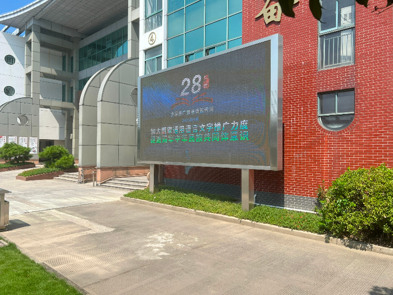 为迎接推普周,学校启用了公共媒介:校门大屏以滚动字幕播出“加大国家通用语言文字推广力度,促进铸牢中华民族共同体意识”等口号;分别由总部语文学科分管李颖老师与分部语文学科组长徐晔雯老师在国旗下讲话进行了推普周的启动仪式。时刻提醒师生语言文明关乎国家认同与文化传承,主动说字正腔圆的普通话,用规范字献礼校庆120周年,让校园成为语言美的示范田。