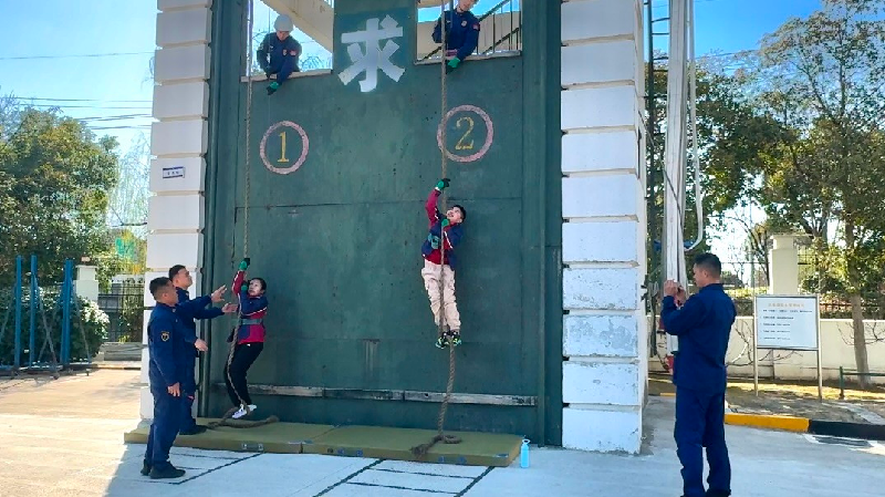 活动伊始,消防员们为同学们带来了震撼的爬楼技能展示。身手矫健的消防员迅速穿戴装备,熟练完成攀爬、转移等一系列高难度动作。利落的身姿、矫健的步伐,让现场学生目不转睛。展示结束后,同学们在消防员的引导下,化身“小小消防员”尝试爬楼体验,亲身感受消防训练的艰辛与不易。