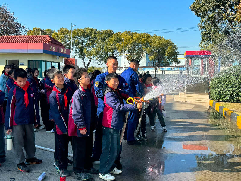 体验环节充满乐趣与收获,同学们在专业指导下体验了水枪喷射,感受消防装备的使用技巧,欢声笑语中,安全知识也悄然扎根心底。最后,大家来到消防车旁,消防员现场展示了消防车的功能布局,并进行了喷射作业演示,强大的功能、高效的装备,让同学们近距离感受“移动安全堡垒”的魅力。