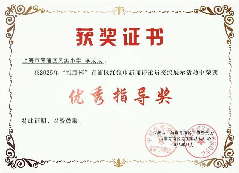 季成成老师荣获2025年青浦区“雏鹰杯”红领巾新闻评论员交流展示活动 优秀指导奖